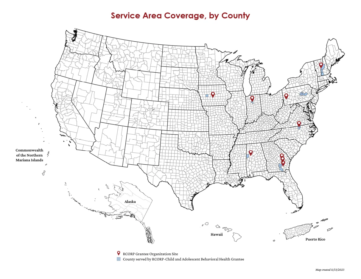 Visit HRSA RCORP Child and Adolescent Behavioral Health for more information about these grantee programs.